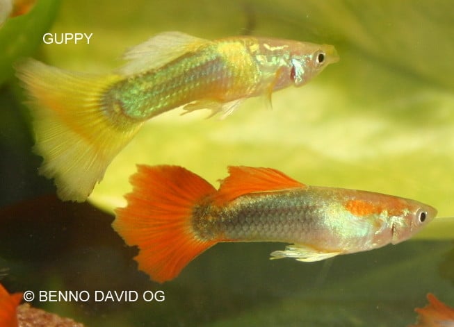 Die Zuchtformen der Guppymännchen zeichnen sich durch prächtige Rücken- und Schwanzflossen aus.